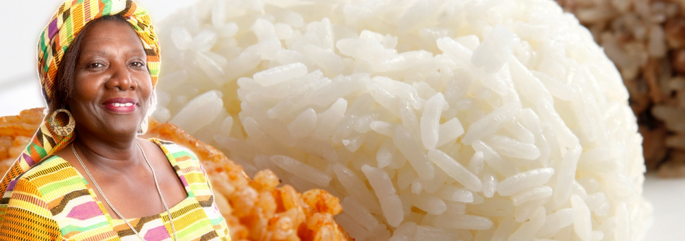 Jollofreis, normaler Duftreis und Bohnenreis.